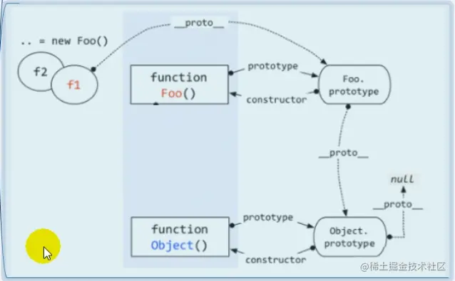 该函数作为普通函数使用时,该原型没有啥作用。可以使用该函数的构造函数来创建一个对象实例,该实例对象中有隐藏属性指向上述的原型对象。该隐藏属性是没有办法直接获取的,一些浏览器环境给加上了__proto__来解决,但是最好不要直接用__proto__来做什么操作,可以用Object.getPrototypeOf(实例)代替。但是也是不符合规范的,最正确的做法应该是使用Ocject.create()来继承一个原型;