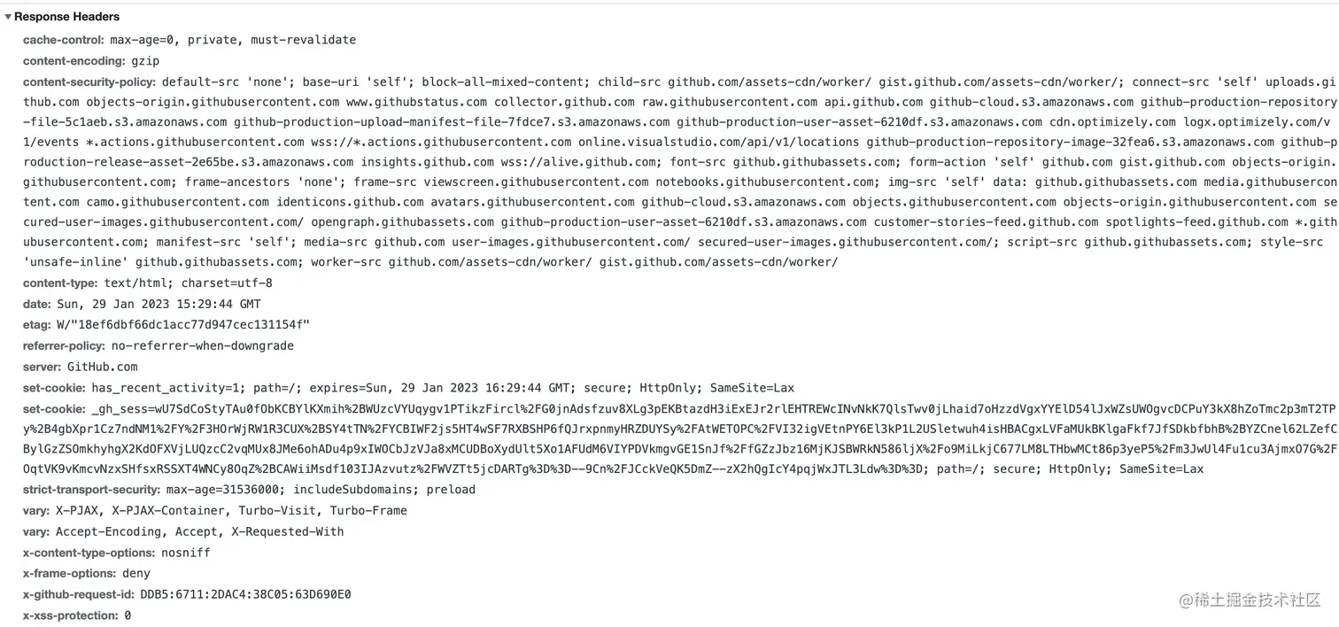 | Set-Cookie | 设置和页面关联的cookie,服务器通过这个头部把cookie传给客户端 |