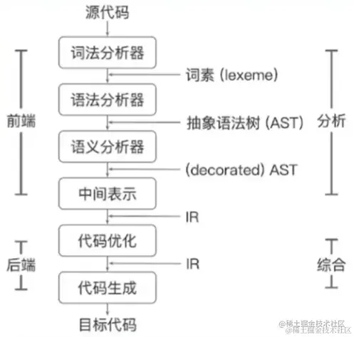 - 中间代码生成:生成intermediate representation(IR)