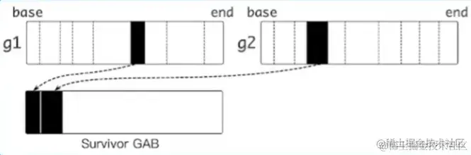 - 当GAB总大小超过一定阈值时,将GAB中存活的对象复制到另外分配的GAB中