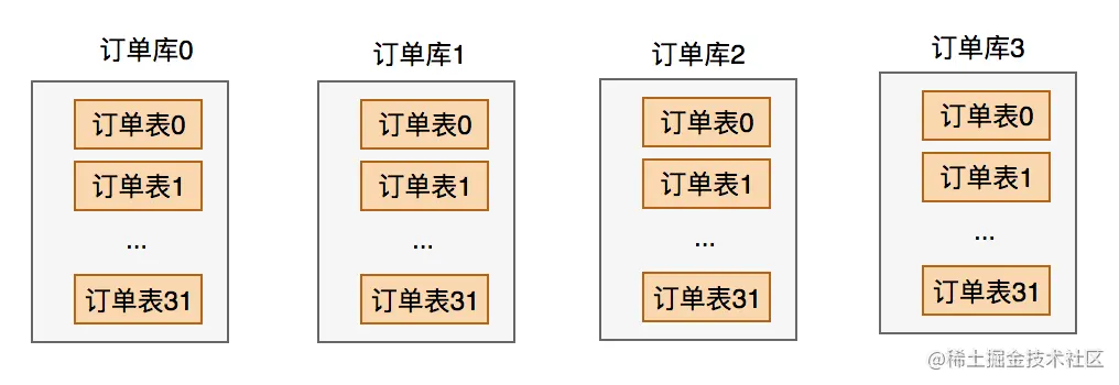 当时分了4个库,每个库有32张表。
