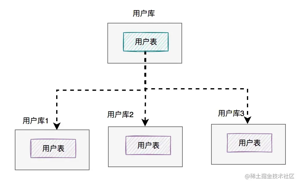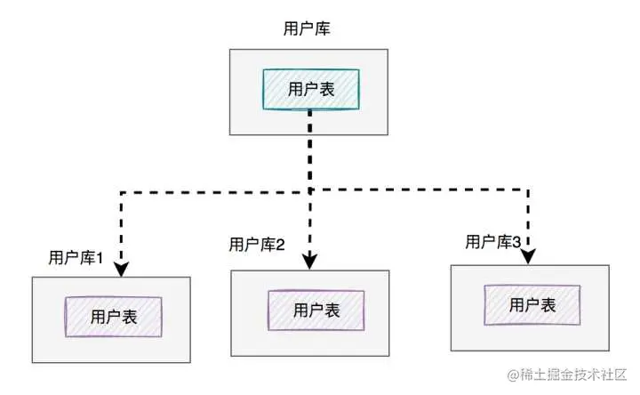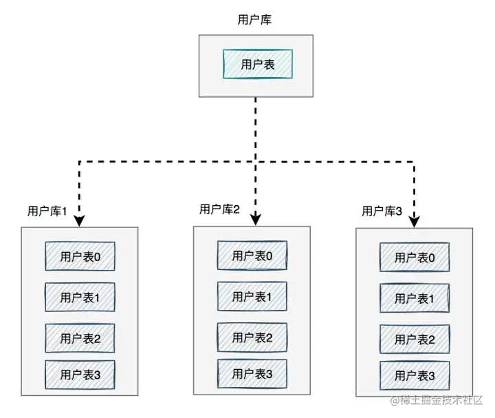 图中将用户库拆分成了三个库,每个库都包含了四张用户表。