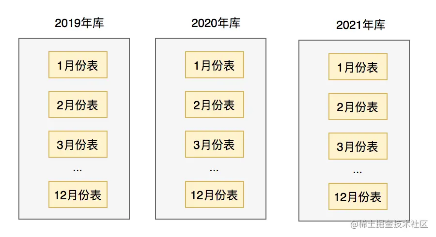 在这里为了看起来更直观,每个库我只画了一张表,实际场景可能有多张表。
