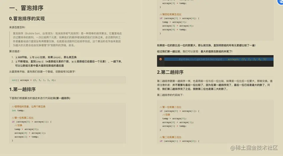 - 冒泡排序的实现
