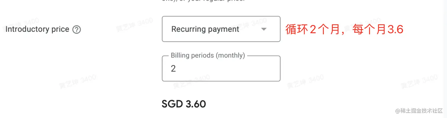 周期性付款:前两个月,每个月9.9,持续两个月,第三个月99