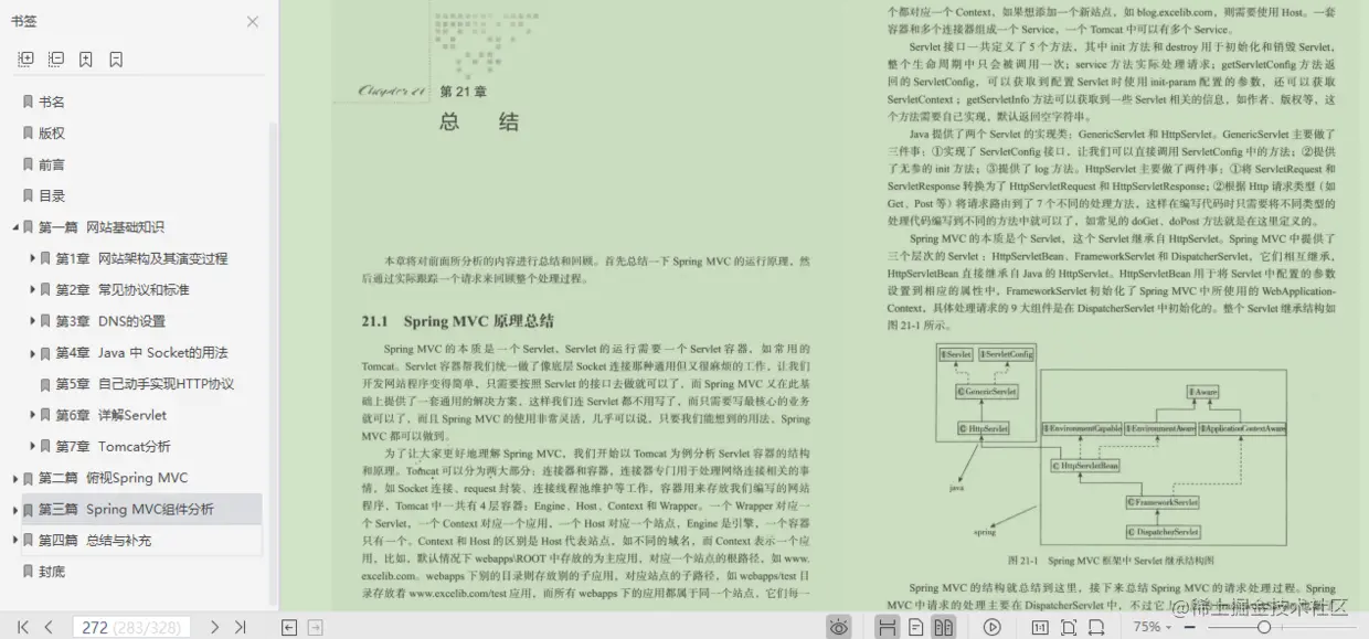 这份资料除了分析SpringMVC的源代码,还系统地介绍了各种网站架构的演变以及Web开发中所涉及的协议和Tomcat的实现方法,现在很多程序员都想了解这方面的知识,但苦于缺乏通俗易懂的资料,而且这些也是程序员达到更高的层次所需要的知识。
