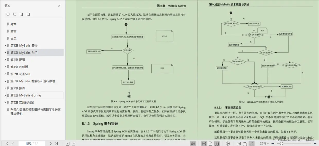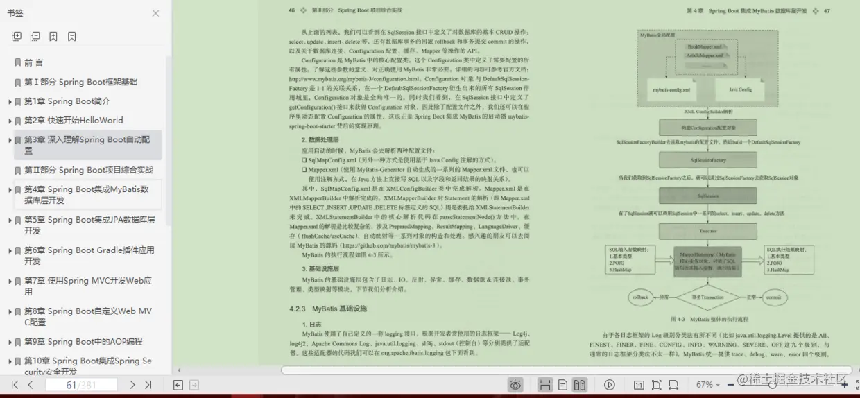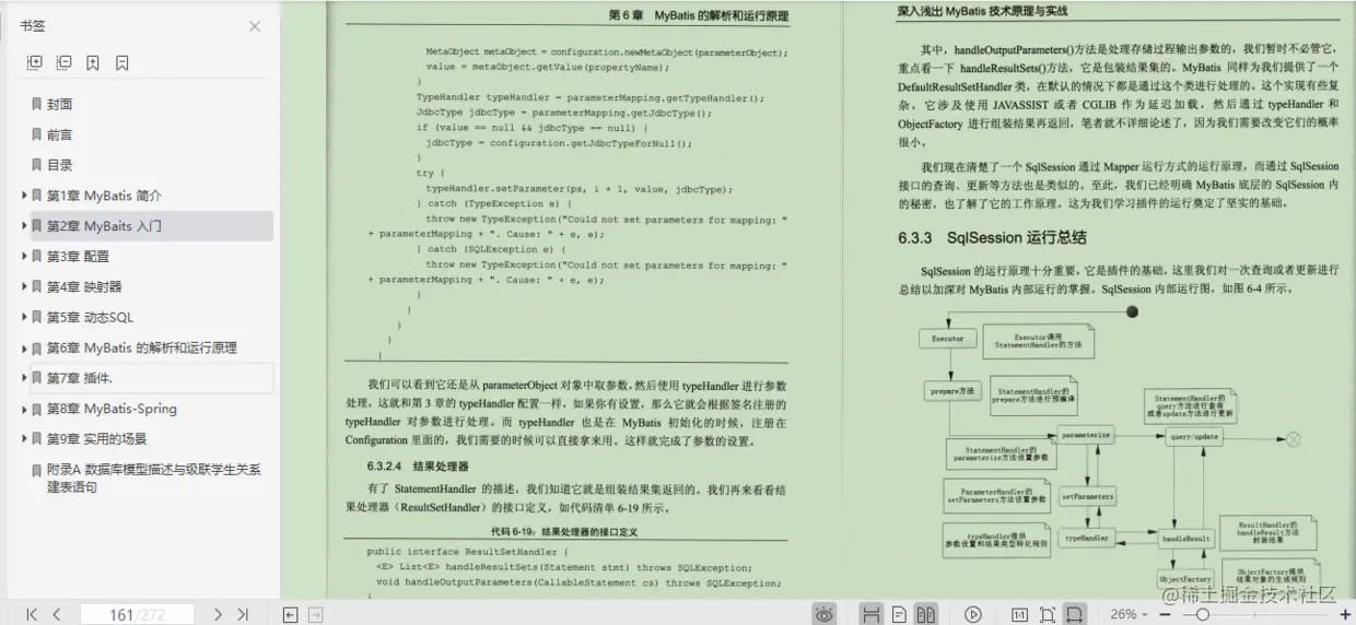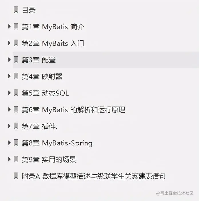 我分享的这份资料里,内容就非常全面,本资料分为3个部分,依次介绍了MyBatis的基础应用、原理及插件开发、实践应用,使读者能够由浅入深、循序渐进地掌握MyBatis技术。首先,在官方API的基础上完善了许多重要的论述和实例,并且给出了实操建议,帮助读者正确掌握MyBatis。其次,详细讲述了MyBatis 的内部运行原理,并全面讨论了插件的开发。最后,本着学以致用的原则,笔者阐述了MyBatis-Spring 项目和一些MyBatis开发常见的实例,使读者能够学得会,用得好。本资料不是一份味同嚼蜡的理论专著,而是一份MyBatis的实践指南,无论你是Java程序员、MyBatis开发者,还是Java持久层框架的研究者,你都能从本书中收获知识。