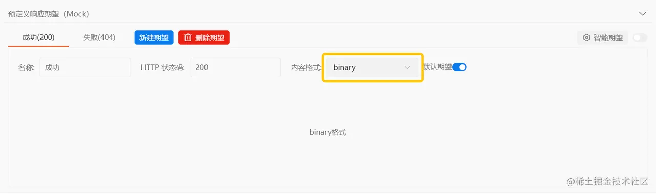3、HTML、Binary格式:只展示格式名,不可手动配置内容,数据结构保存后,可以在响应示例中引用。
