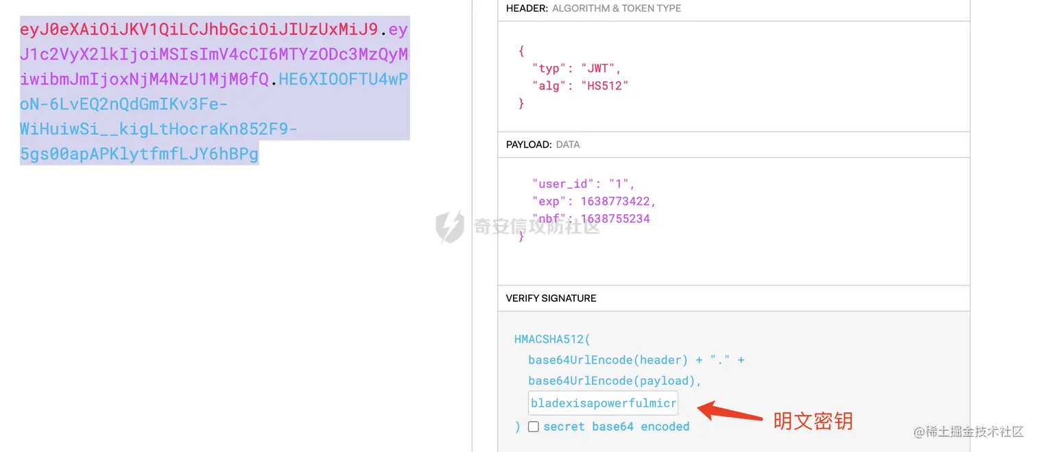 使用jwt密钥,对认证字符串进行解密,然后返回其内容,**如果解密结果不为空,则直接绕过认证。**那么继续往下,找JWT的解密过程及密钥: