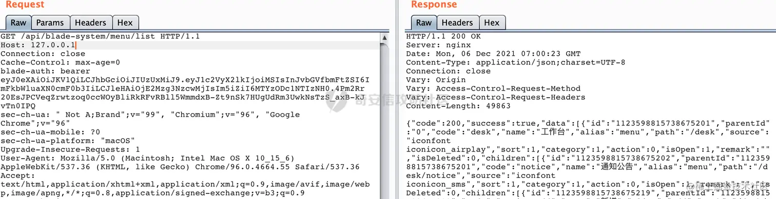1、/api/blade-user/user-list 接口会泄漏所有账号密码,不过需要administrator权限,不加role_name时,也可以,但无内容。