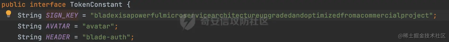 是由TokenConstant.SIGN_KEY进行base64加密得来的。看一下TokenConstant.SIGN_KEY: