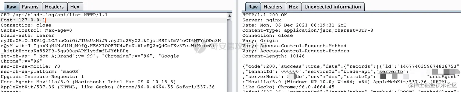 1、/api/blade-log/api/list接口中会泄漏账号密码,只要管理员登录过