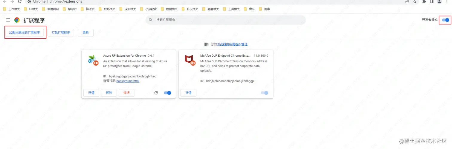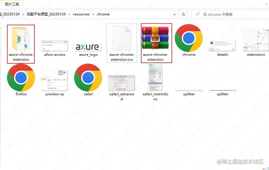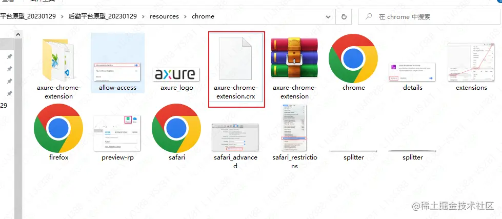 chrome打不开原型图解决方案 恰好在这里 2023-01-30 255 阅读1分钟 1、将原型图解压后,找到resources->chrome下面的.crx文件 2、将该.crx文件拷贝一份后,将拷贝的文件修改成.zip的文件,解压到当前文件夹 3、打开谷歌浏览器,进入设置-扩展程序,加载已解压的zip文件 4、重新打开原型图即可