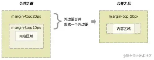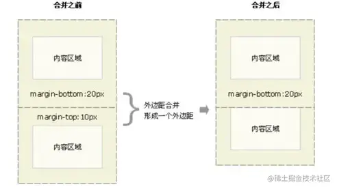 比如,这个元素的顶部边距和这个元素的底部边距,会被折叠成一个单一的边距,这个边距等于两个边距中最大的那个。