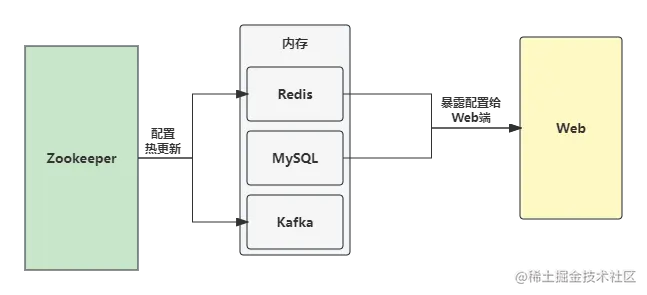 Redis和Kafka配置信息需要热更新,也就是说在Zookeeper中更新Redis和Kafka信息配置时,需要能够及时更新到内存中。- 能够通过一个固定的