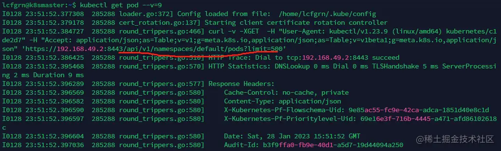 使用kubectl命令时,可以加上 --v=9,可以显示出详细的命令执行过程,看到发出的HTTP请求