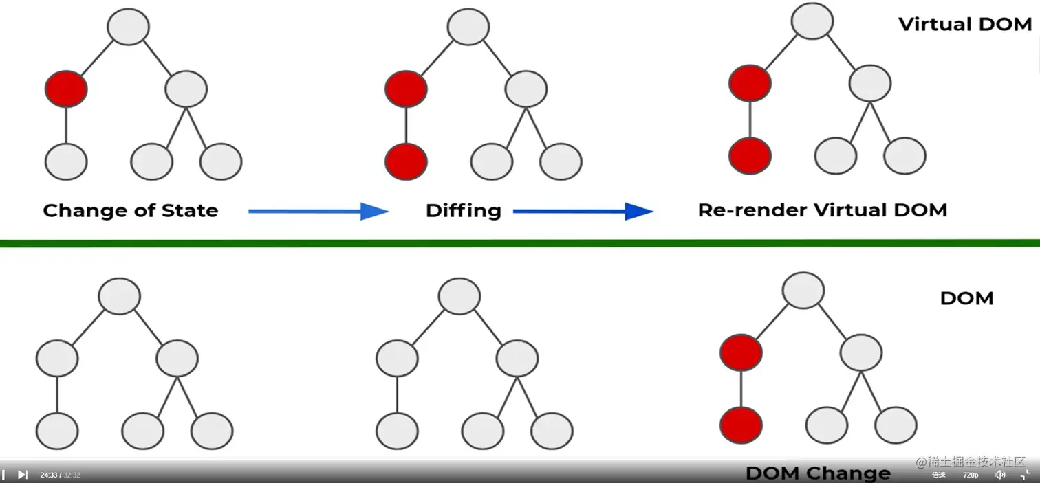 - 状态更新,UI不会自动更新,需要手动地调用 DOM进行更新