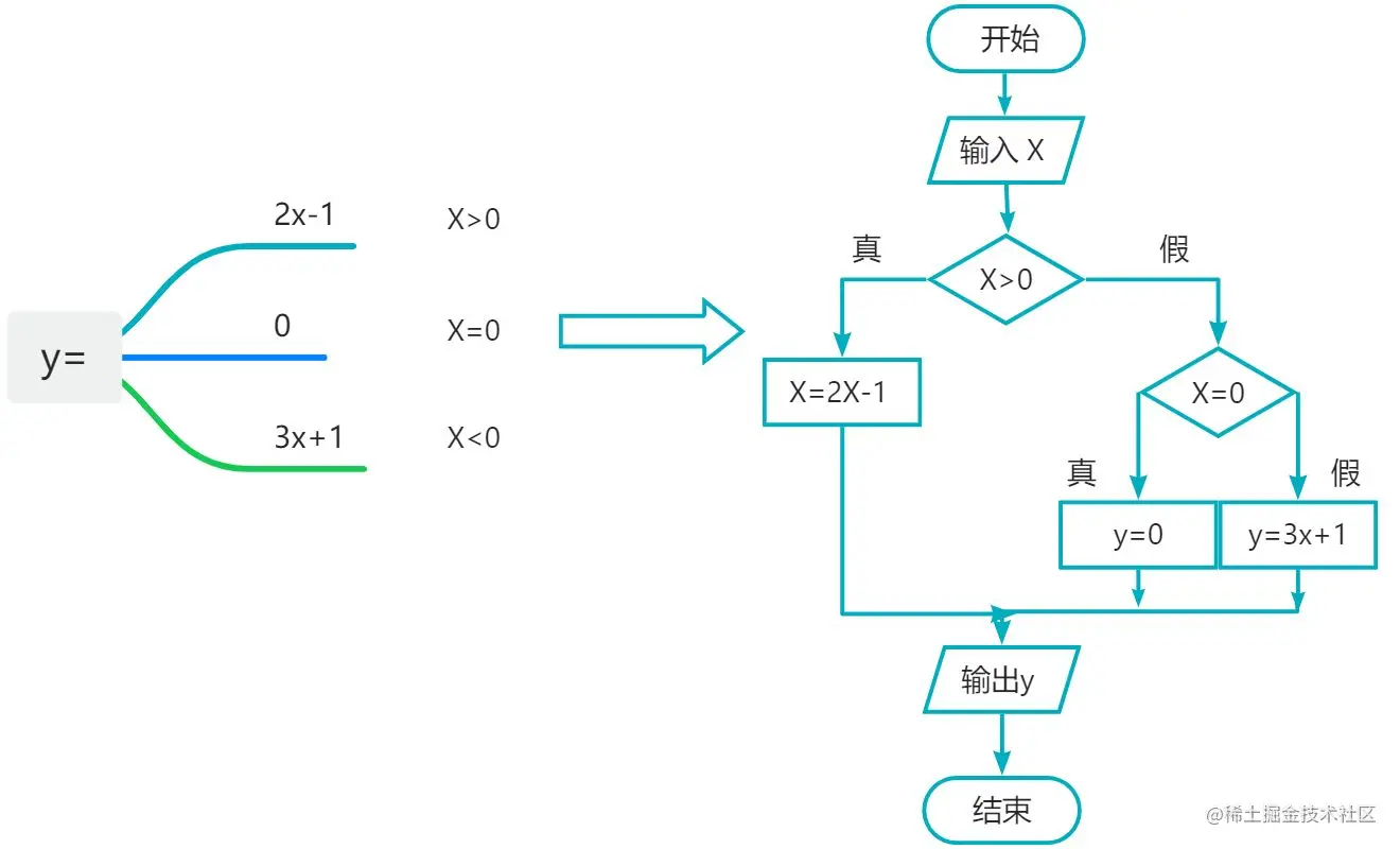 用流程图表示下面的分段函数: