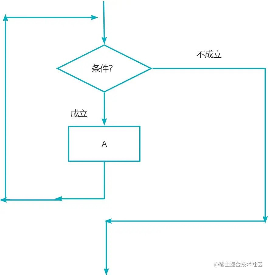 先判断条件,如果条件成立,执行A,再循环判断条件,否则,跳出循环。(上图所示)