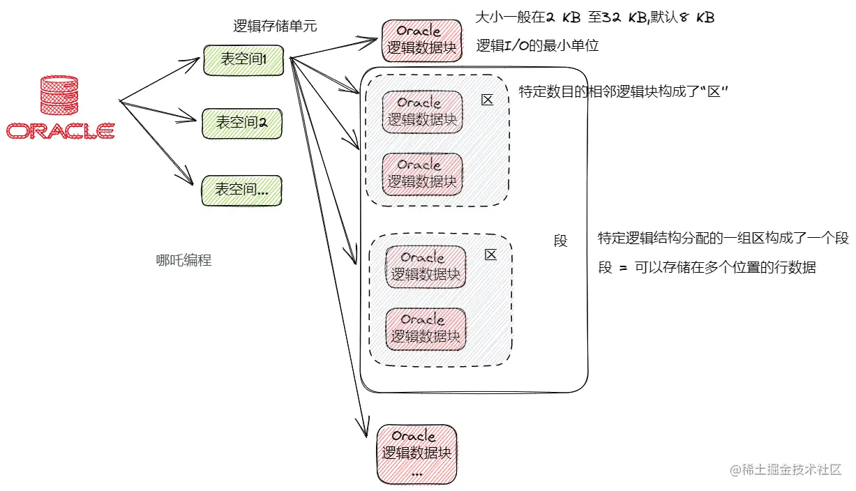使用Oracle这么久,第一次系统的了解Oracle的存储结构,Oracle -> 表空间 -> 段 -> 区 -> 逻辑数据块。