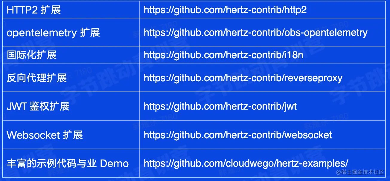 - Hertz 是字节内部的 HTTP 框架,具有高易用性、高性能、高扩展性特点。