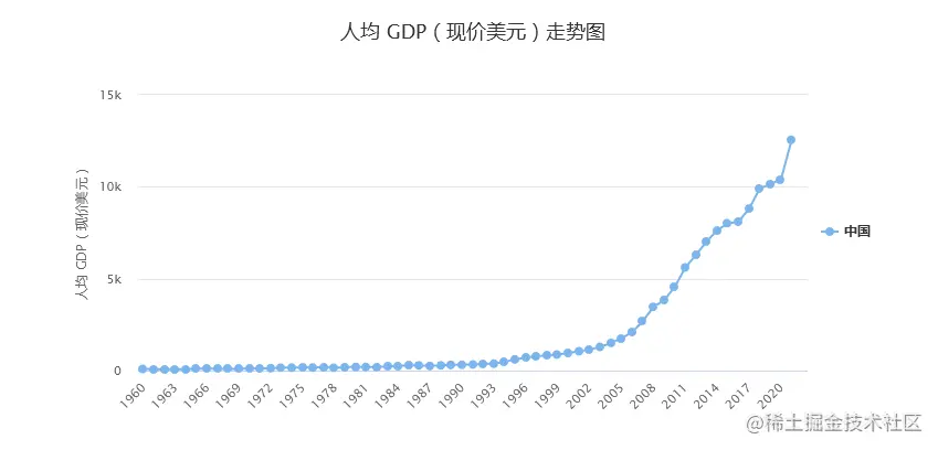 中国人均 GDP(现价美元)走势图