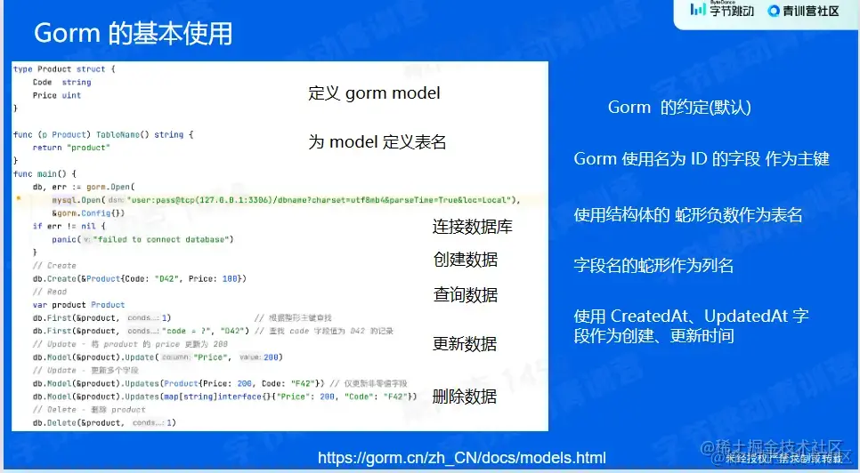 // Gorm 操作数据库,需要定义一个 struct 类型和 Mysql 表进行绑定或者叫映射
