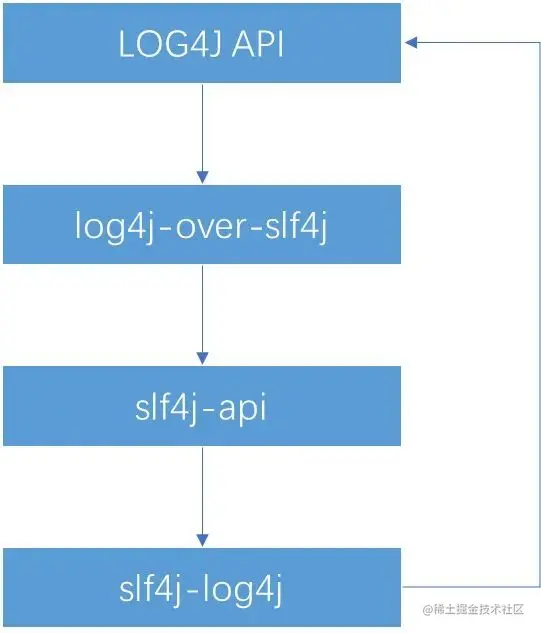 那么显然,这里就有个问题:SLF4J确认了自己的核心路径,然后暴露出待实现接口,SLF4J-LOG4J在尝试实现SLF4J的待实现接口时,又使用了委托机制,把相关的路径细节外包了出去,从而形成了一个环。