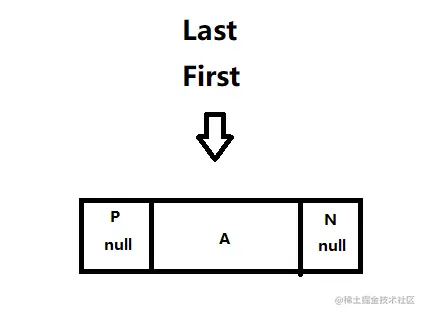 - last 指向 newNode(A,由于 l == null,first 指向 newNode(A)