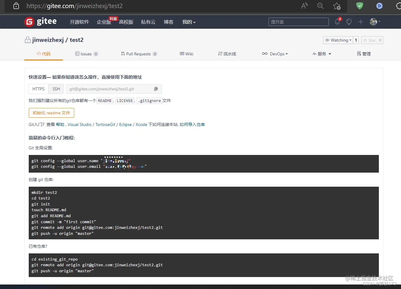 git clone git@gitee.com:jinweizhexj/test2.git --克隆仓库