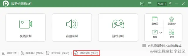 在了解数据蛙录屏软件的基本功能之后,小编教大家使用它如何录制无水印的视频。
