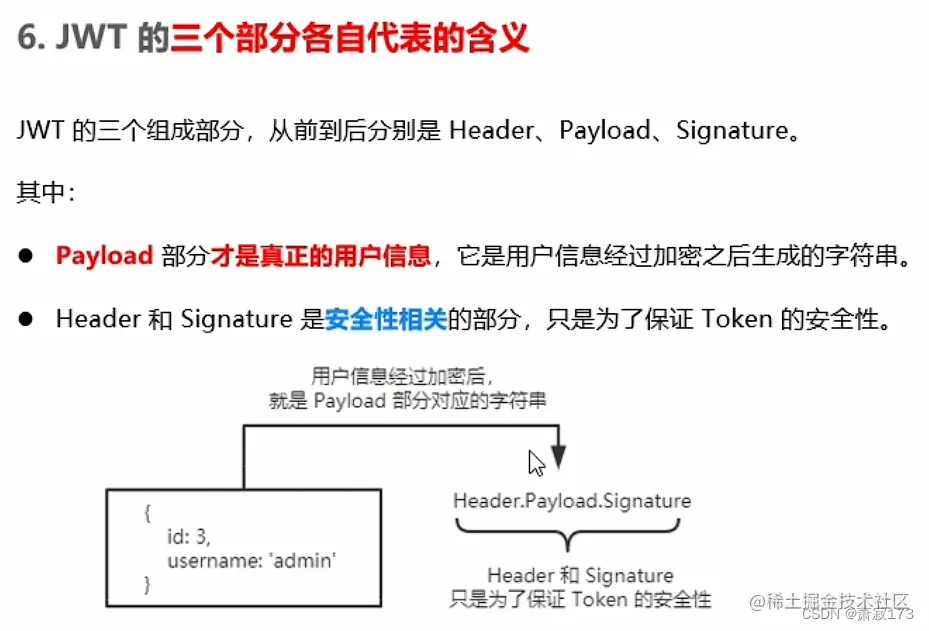 对于服务端渲染和前后端分离这两种开发模式来说,分别有着不同的身份认证方案: 服务端渲染推荐使用Session 认证机制 前后端分离推荐使用JWT认证机制