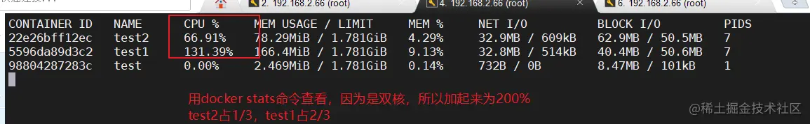 2、设置CPU资源占用比(设置多个容器时才有效)