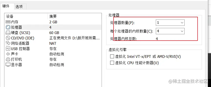 #先分配虚拟机4个CPU核数