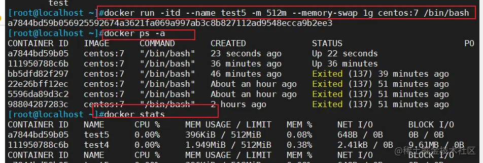 docker run -itd --name test4 -m 512m centos:7 /bin/bash