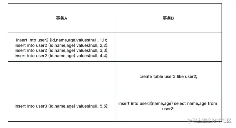 所以你会看到当事务A执行完,但未提交时,事务B 的show create table user2 的 AUTO_INCREMENT=4也就证实了这个说法。