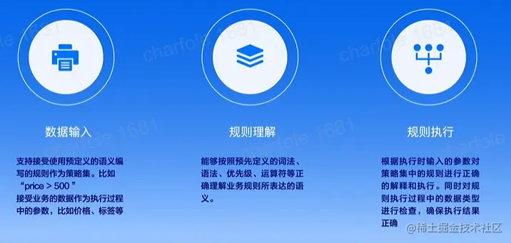 组成部分 规则引擎由数据输入、规则理解和规则执行三大部分组成