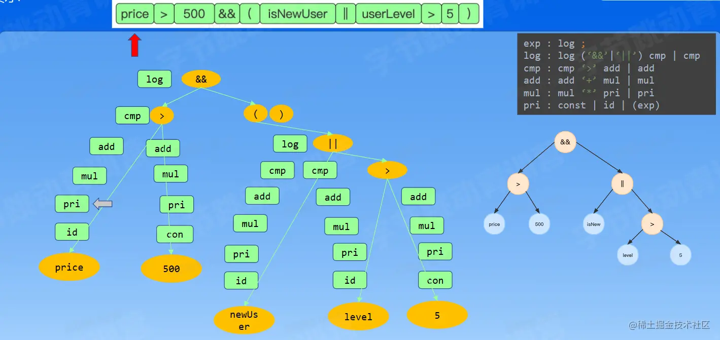 执行:抽象语法树(对于一个表达式,抽象语法树唯一确定)