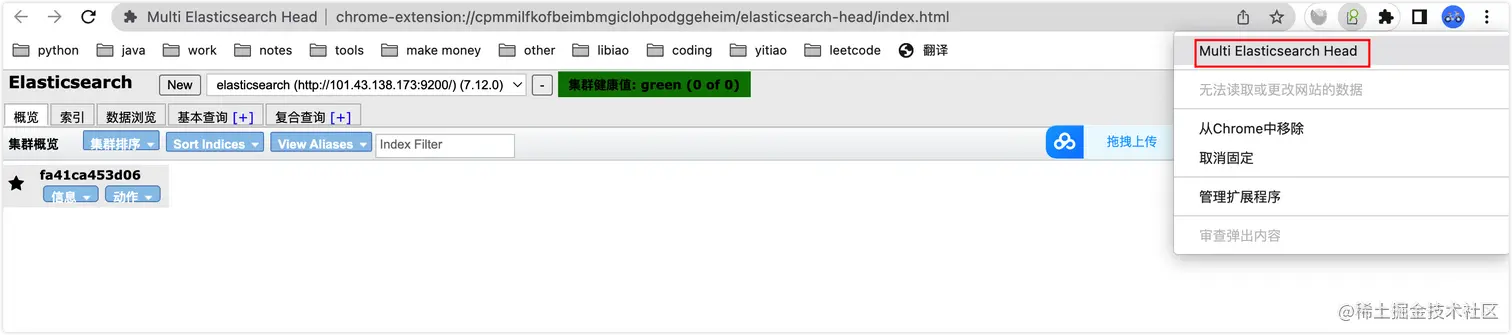 刷新插件,集群变成绿色。