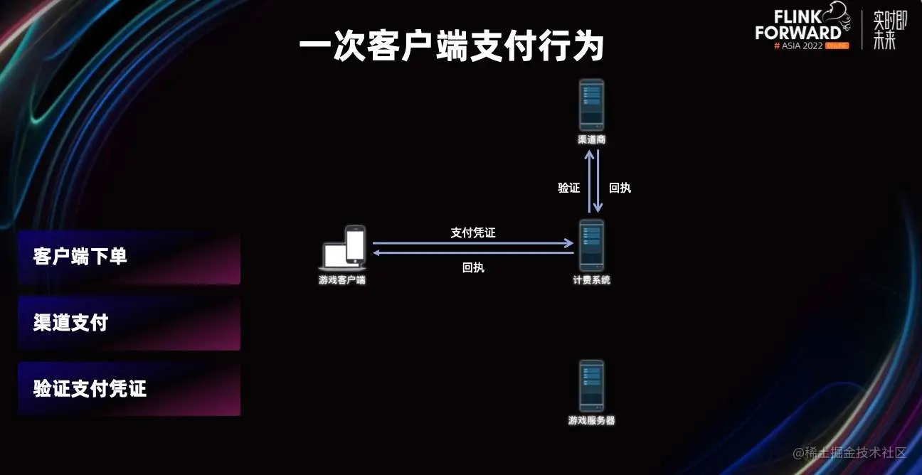 当支付完成后,我们会把渠道返回给客户端的支付凭证回传给计费系统,计费系统会去渠道验证凭证是否有效。