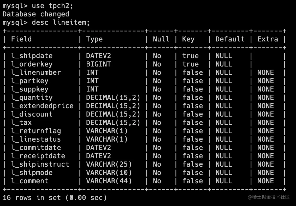 以下是在 Doris 中的建表存储数据,其中小数的列分别用 DecimalV3 进行存储: