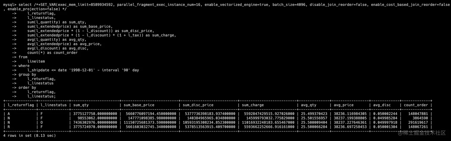 tpch2 库(老版本 Decimal)的 SQL 执行结果为 8.13s