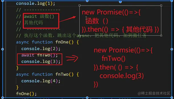 // 这里会执行这个函数,然后把这儿的其它代码放到微任务里.详见图