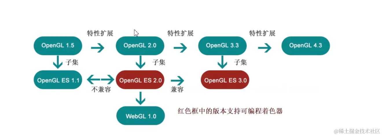 OpenGL-ES 是openGL的一个精简版.专用于嵌入式计算机、智能手机、家用游戏机等设备。OpenGL ES移除了OpenGL中许多陈旧无用的新特性,并且增加了新特性。这使得OpenGL ES保持了轻量级的同时,还有足够的能力渲染出精美的三维图形。