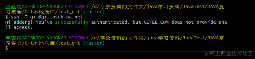 查看Gitee是否链接: ssh -T git@git.oschina.net