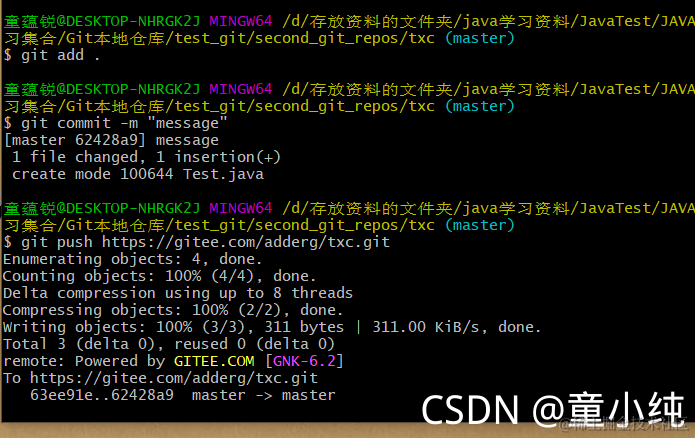 Git添加项目出现的问题(Gitee版)-----Everything up-to-date 童小纯 2023-01-31 33 阅读1分钟 解决方法: $ git add . $ git commit -m "message" $ git push https://gitee.com/adderg/txc.git