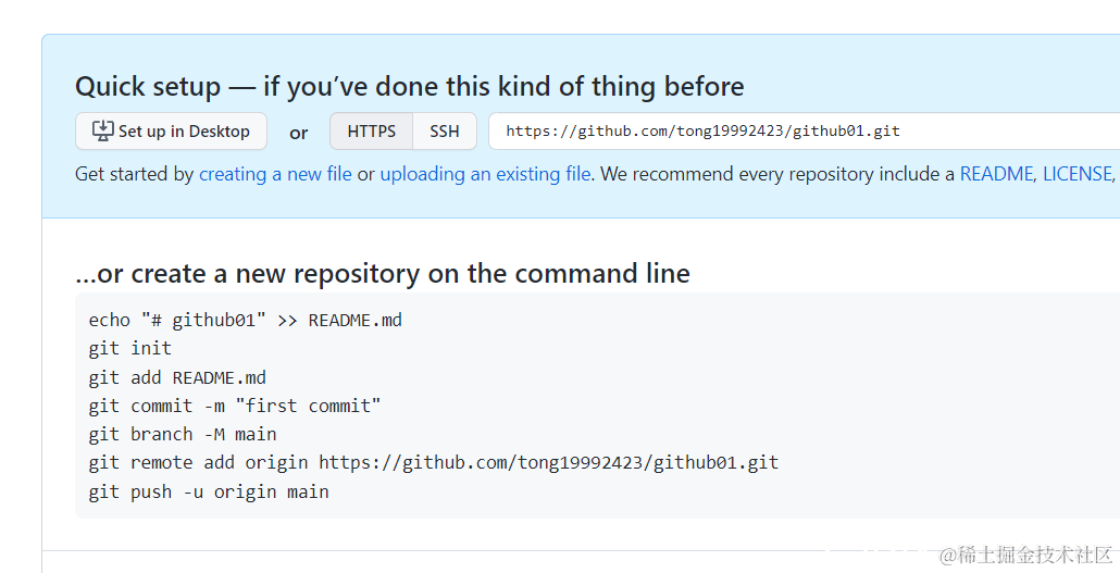 Git创建----远程仓库操作(GitHub版) 童小纯 2023-01-31 50 阅读1分钟 git工具中粘贴是: ****shift + insert shift + insert shift + insert (★★) 把项目克隆到本地 把本地库推送到GitHub远程仓库 先要在GitHub创建一个仓库 创建成功 在推送的时候 有可能报 提示说没有.git这样一个目录 解决方法:在命令行 输入 git init 然后回车就好了