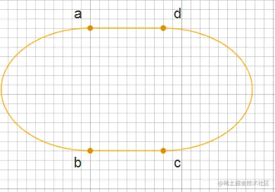 1、先画灯笼中间的主要区域。以a、b点先画半椭圆,然后b点到c点是直线,再画c点到d点半椭圆,闭合图形,填充红色