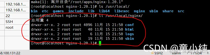 进入到 Nginx 解压包目录 /apps/nginx-1.20.1 目录中,查看 Nginx 的目录。