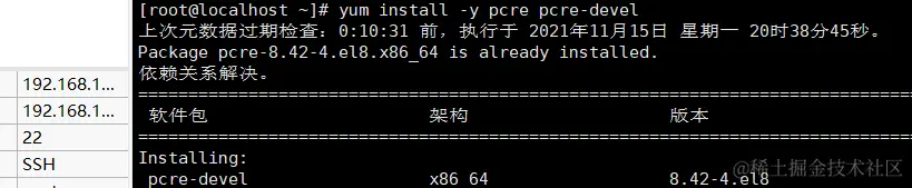 注:pcre-devel是使用pcre开发的一个二次开发库。nginx也需要此库。
